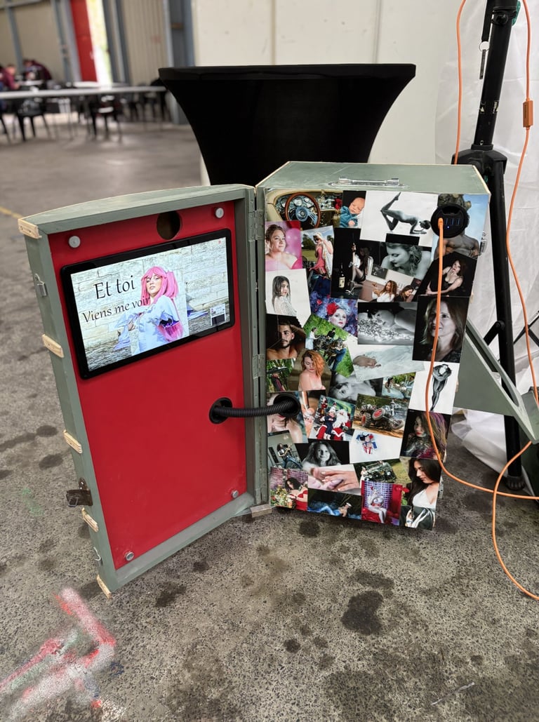 La malle fonctionne en collaboration avec le photographe présent sur place. C'est lui qui prend les photos durant l'événement, en capturant les moments importants et les instants spontanés.