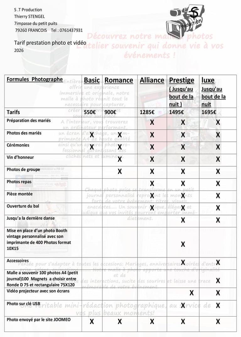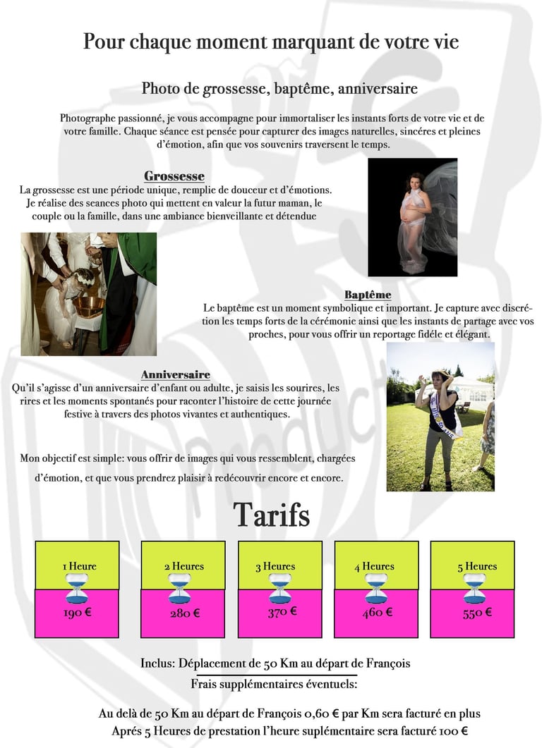 Pour tout déplacement au-delà de 50 Km au départ de François, des frais de déplacement supplémentaires seront appliqués.